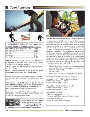 HUTCHINSON SKI CLUB 2017 Grades 6-12 permit test fee which is collected by the State of Minne-