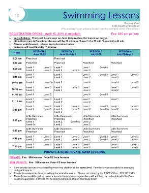 These lessons will be set up on an a la carte basis - parents/guardians will set their own schedule with the Swim