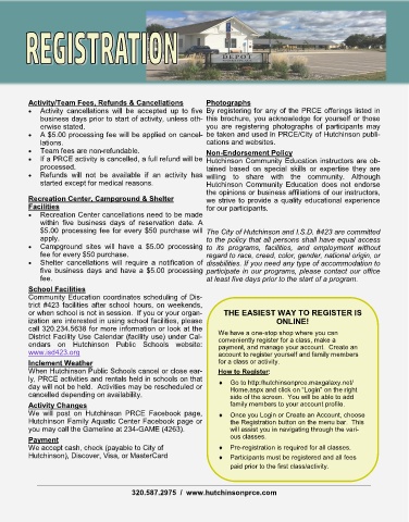 • If a PRCE activity is cancelled, a full refund will be Hutchinson Community Education instructors are ob-