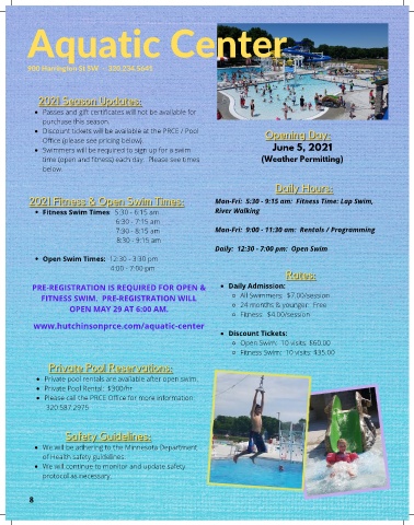 7:30 - 8:15 am Mon-Fri: 9:00 - 11:30 am: Rentals / Programming