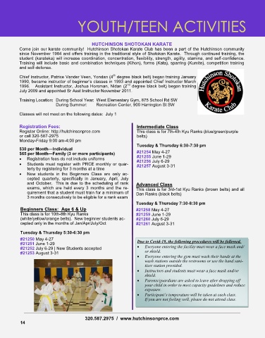 (white/yellow/orange belts). New beginner students ac- #21260 July 6-29