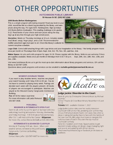 Visit www.hutchinson.lib.mn.us to get the most up-to-date information about library programs and services. OR call the